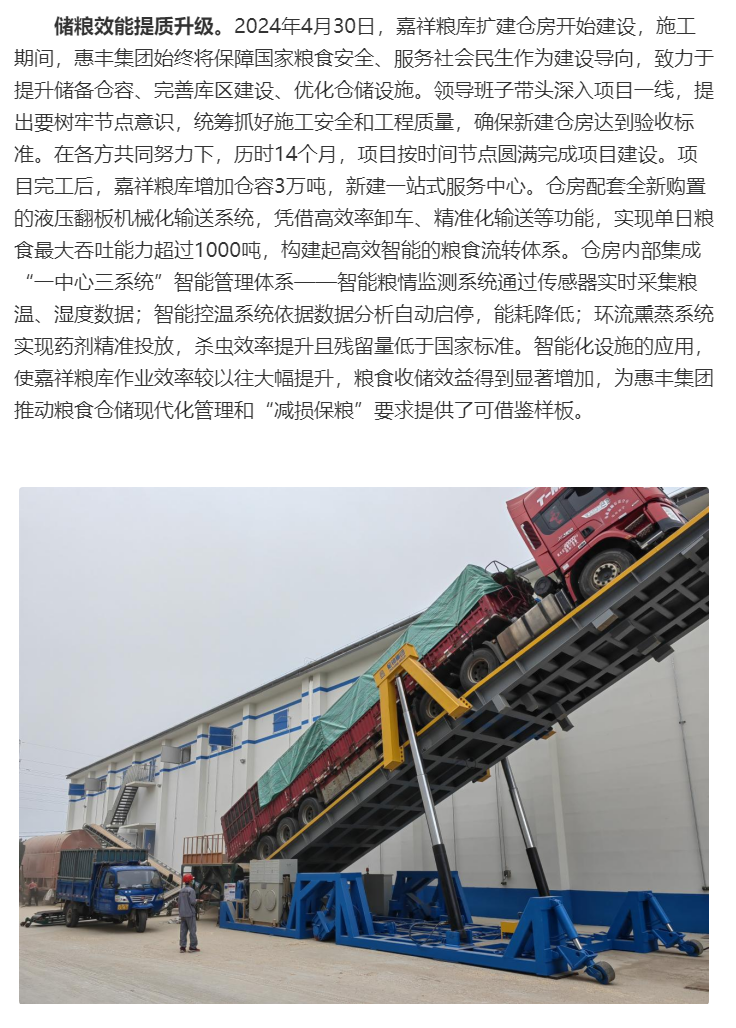 《人民网》| 种好粮储好粮 “新粮”入“新仓” 山东惠丰集团嘉祥粮库扩建仓房正式启动收粮